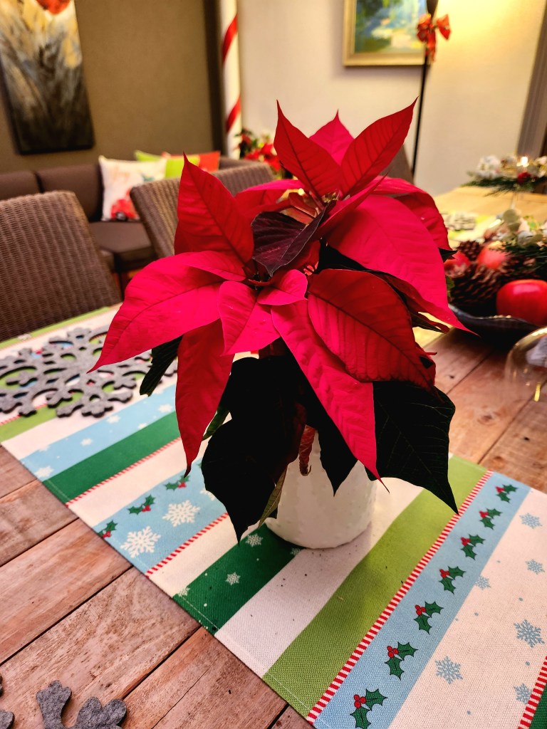 Poinsettias, my favourite festive flowers, bring a burst of red and green.