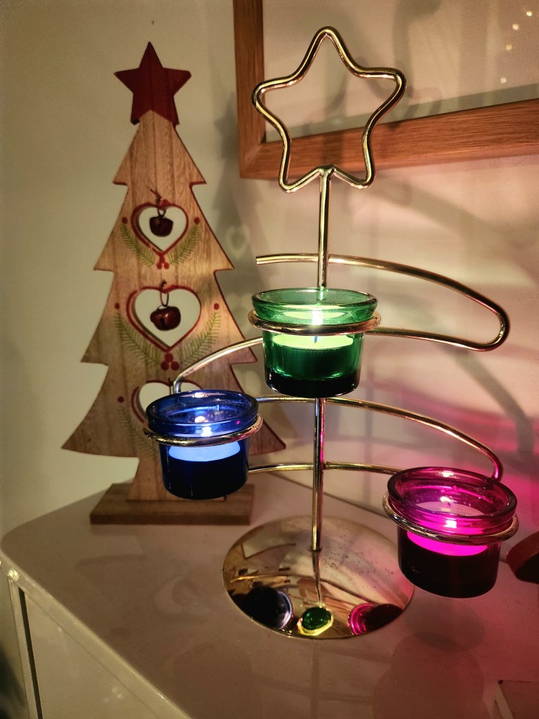 Candles glow warmly, casting a soft light over the room.