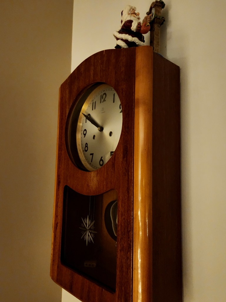 You can settle in under the warm presence of my beloved grandfather clock, next to my grandmother’s paintings and lose yourself in the pages of a Christmas story.