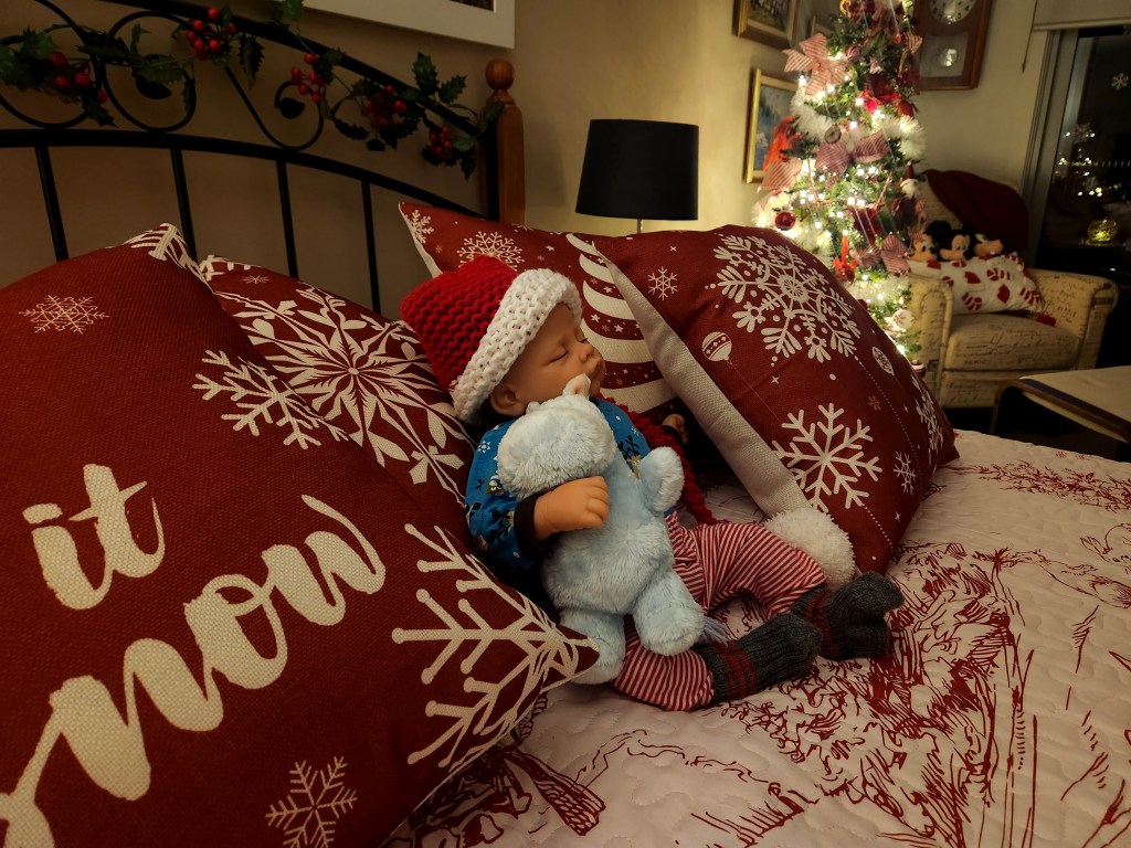 Her dreams are as sweet as sugarplums, and she seems to glow with the warmth of the season.