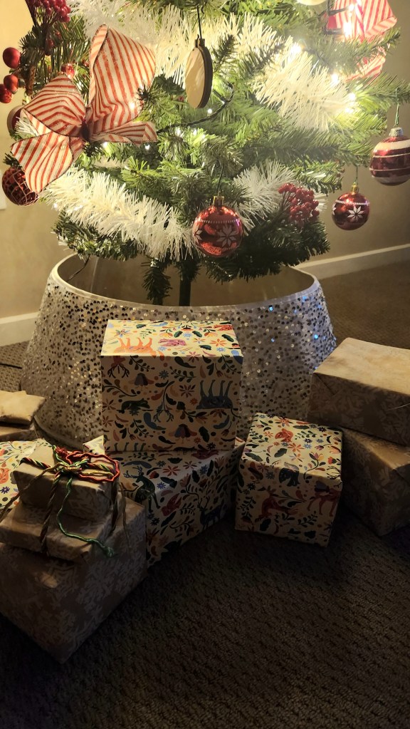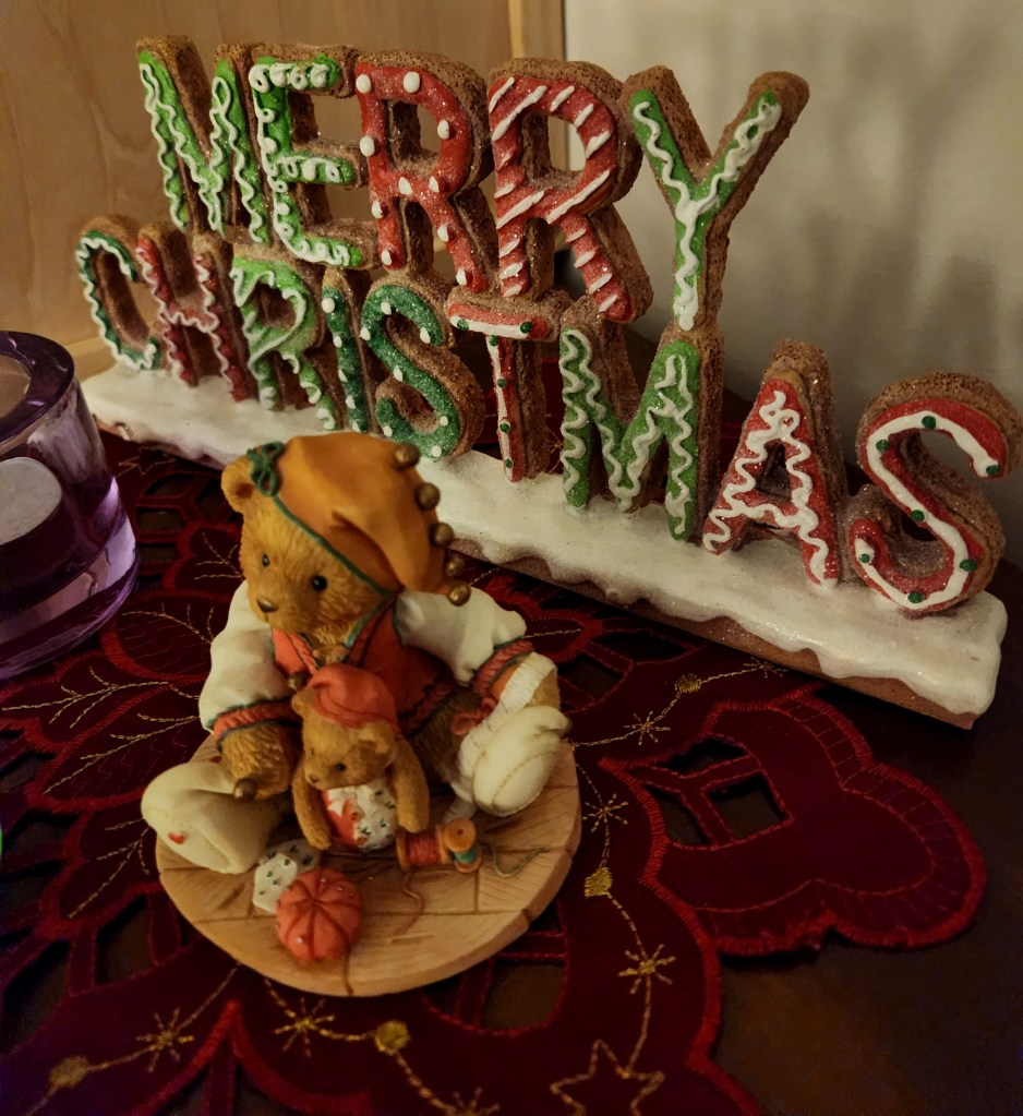 Her thoughtful gifts have found a cherished spot in our little Christmas haven.