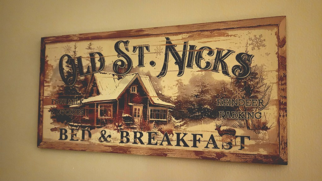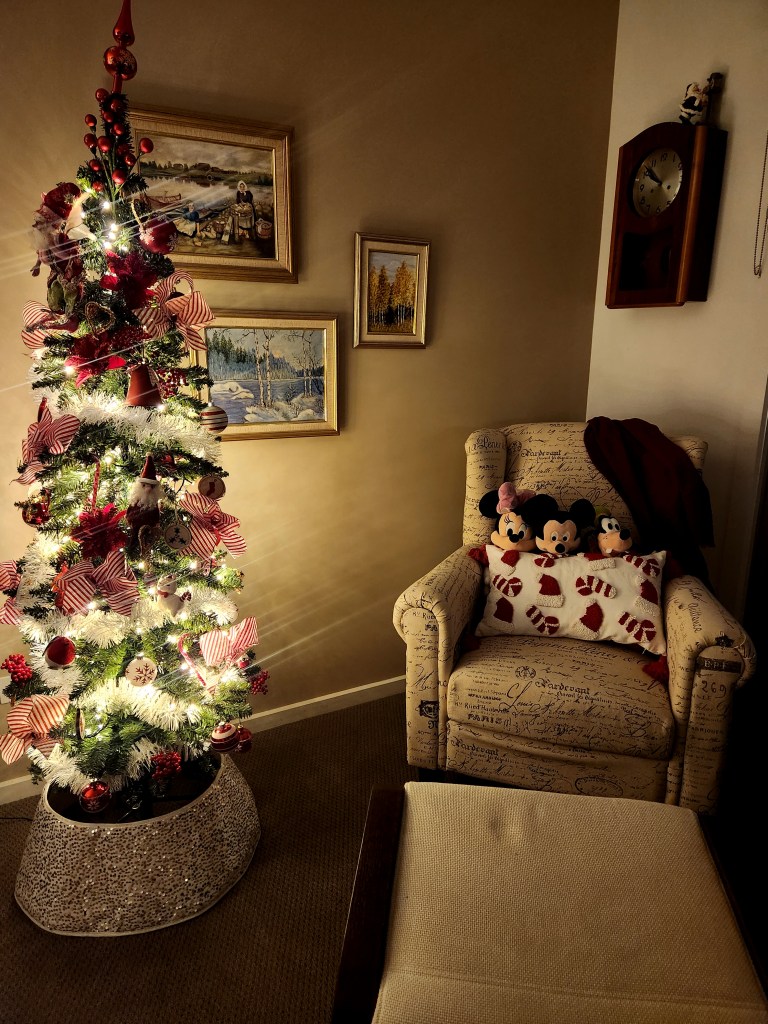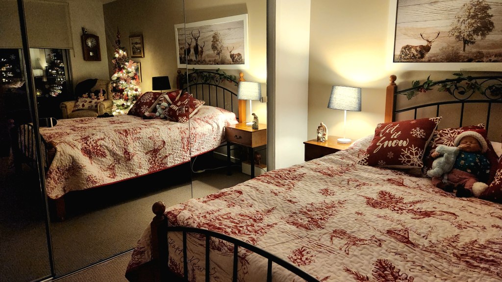 It’s our visitors’ room, but it feels more like a corner of Santa’s retreat.