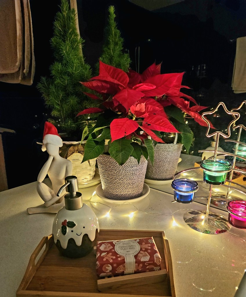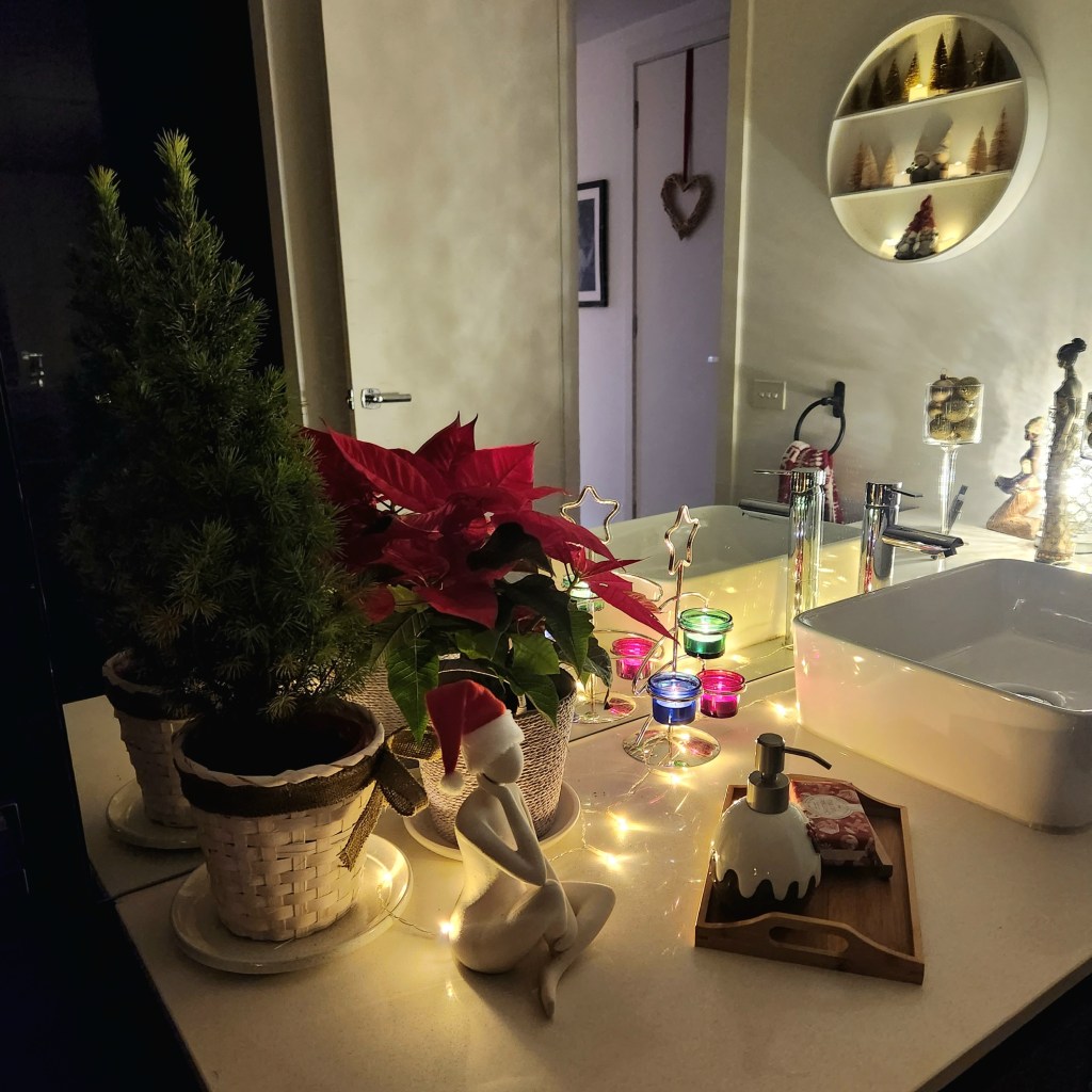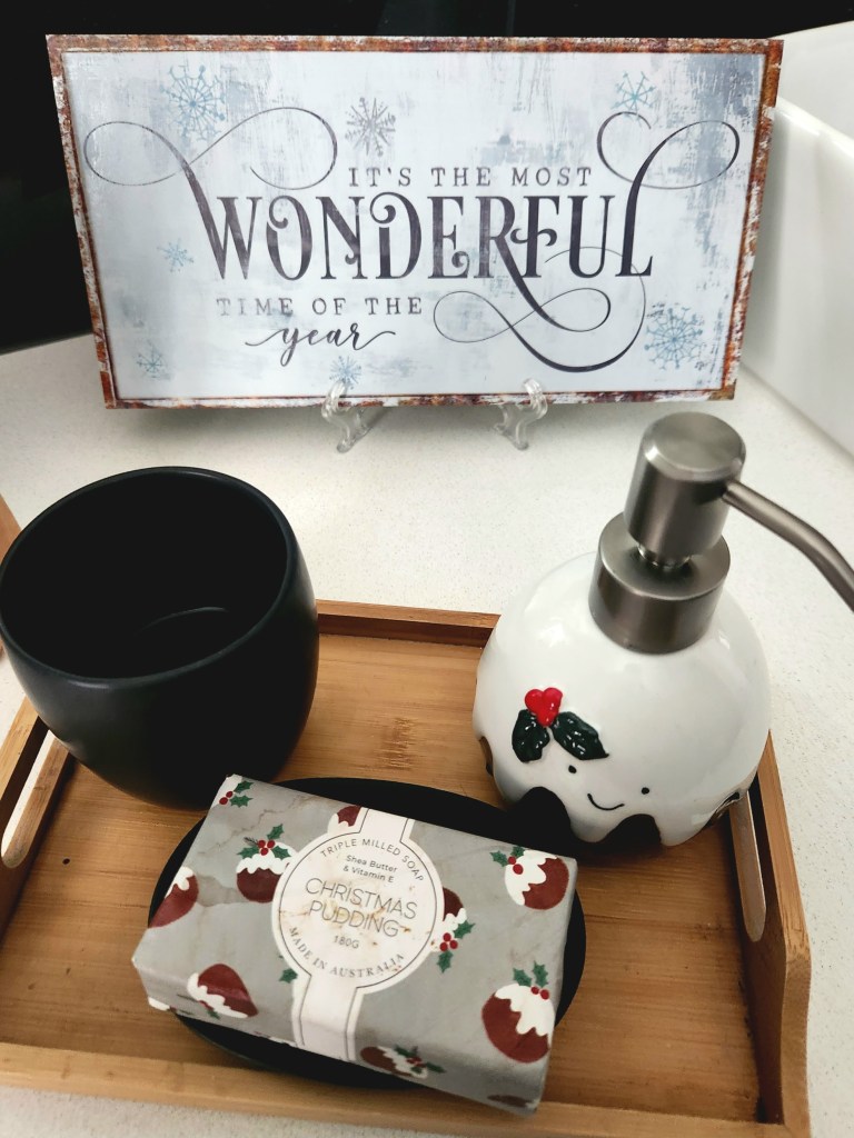 This year, I decided to spread the Christmas cheer into every corner of our home, including the bathrooms.